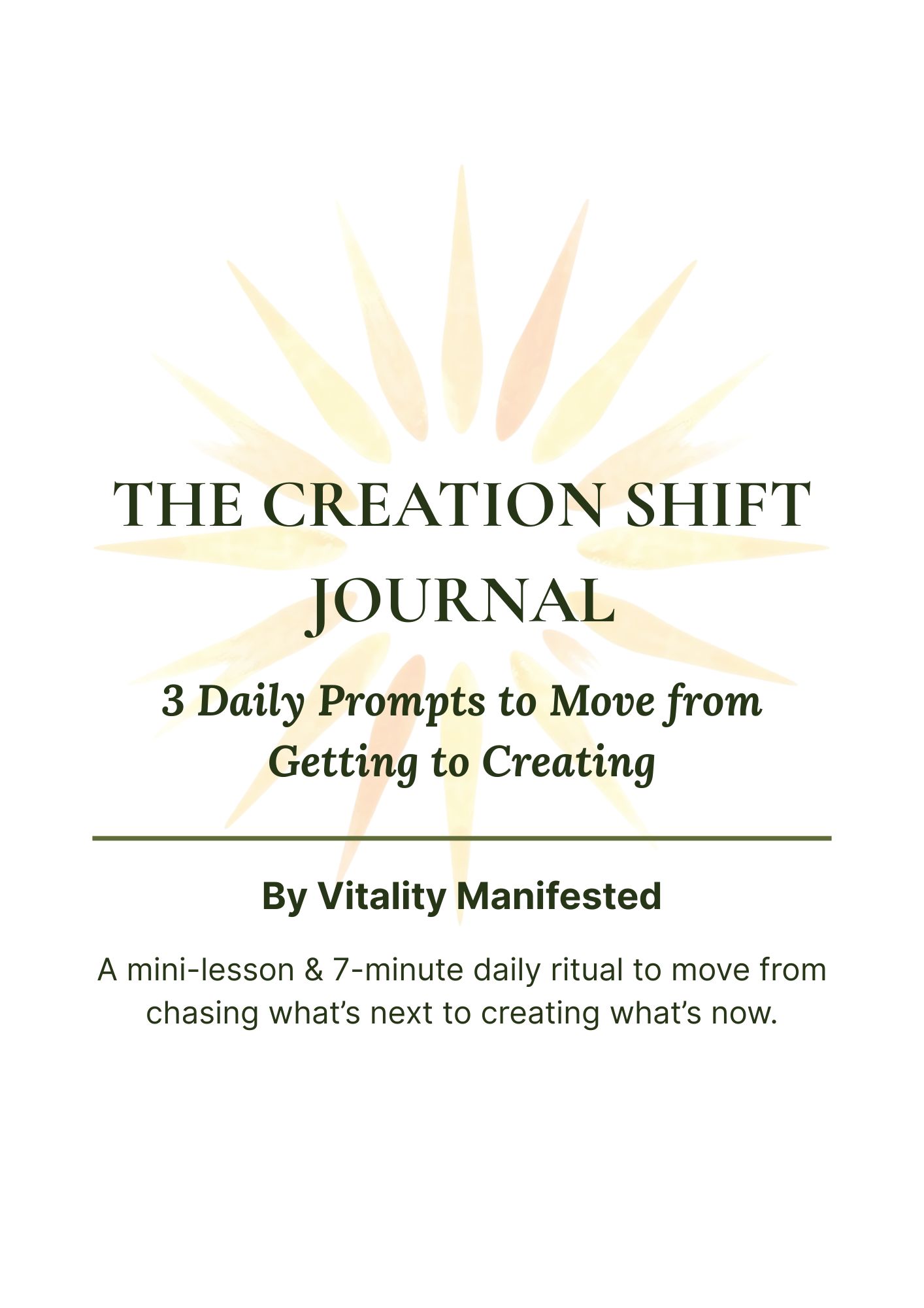 It’s a short, downloadable / printable journal designed to help you pause the daily chase and reconnect with your creative power. Inside, you’ll find a mini-lesson explaining the science of awareness and three simple prompts that train your mind to create rather than react.
